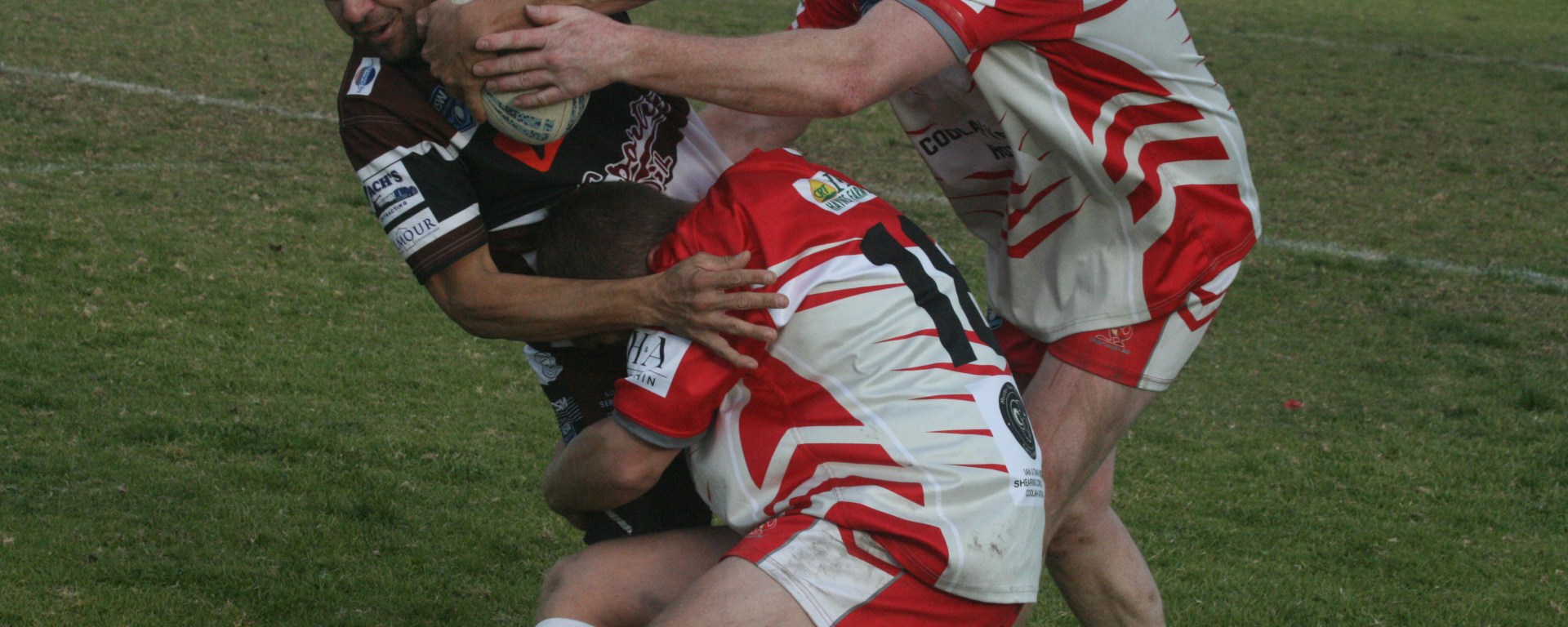 Cover Photo: A Gilgandra attacker takes on two Coolah defenders on Saturday (Stephen Basham)