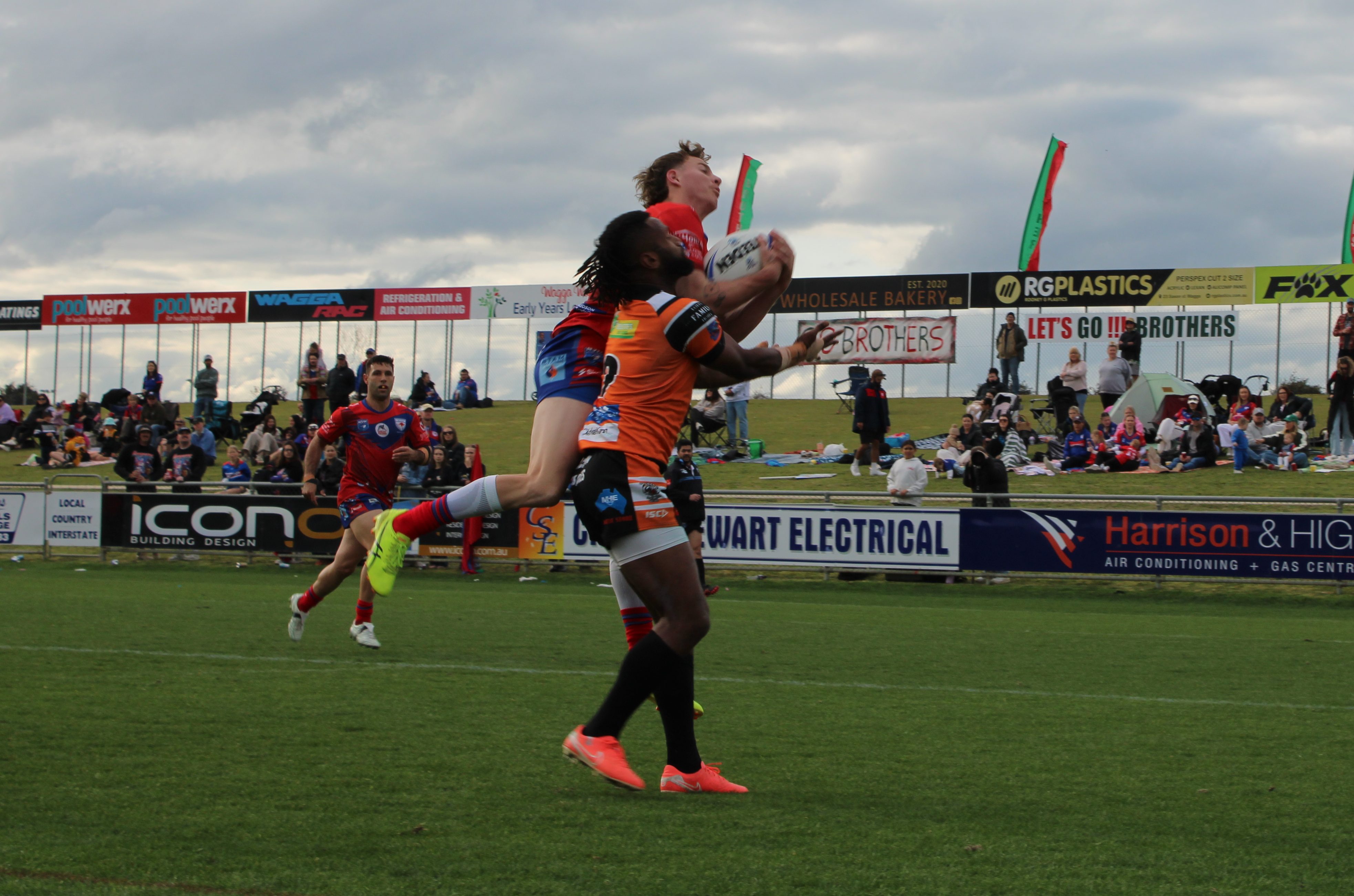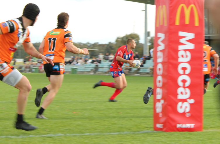 Both sides then traded similar tries from short range dummy half scoots, with Gus Clark crossing the line for Kangaroos before halfback Jacob Tobok hit back in the opposite corner for Albury.